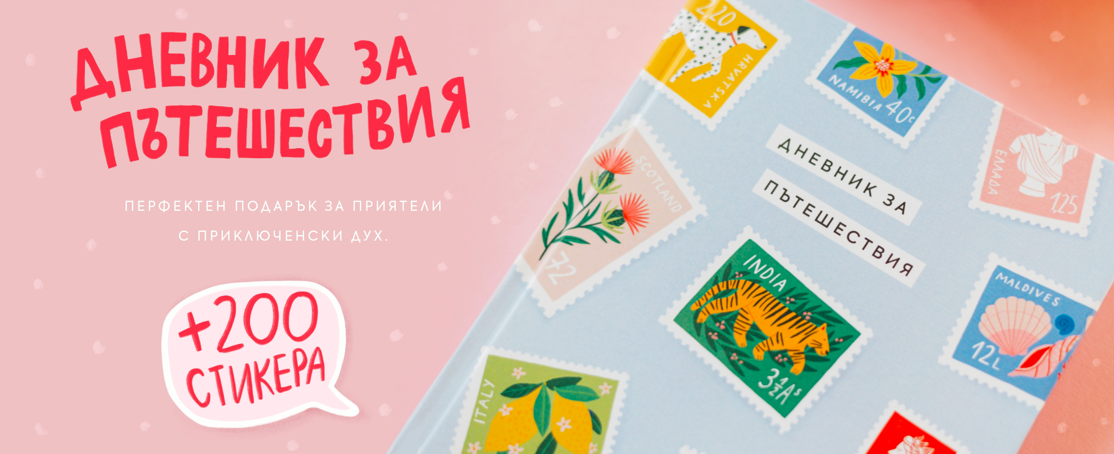 Този дневник с предварително очертани страници ще ви помогне да планирате пътешествията си, да запишете любимите си моменти и да ги запомните завинаги. Вътре ще намерите и повече от 200 авторски стикера, с които да украсите страниците му.